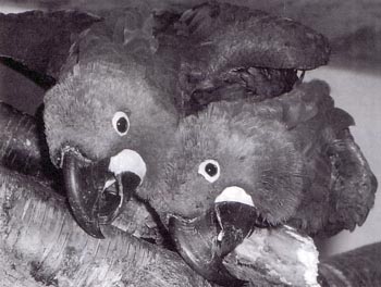 Allerdings dürfte die Behinderung bei der Jungenaufzucht durch den zu wuchtigen Schnabel keine Auswirkungen auf den Fortbestand der Hyazintharas haben, da die Tiere es ja doch immer irgendwie schaffen, ihre Jungen satt zu bekommen. 5ollte dieses jedoch tatsächlich einmal der Fall sein, wären die Elterntiere mit einem kleineren Schnabel im Vorteil. und deren Jungen hätten die großeren Überlebenschancen, was auf Dauer gesehen wieder zu kleineren Schnabeln führen würde. Deutlich wird an diesem Beispiel aber, daß eine Spezialisierung zwar fur gewisse Lebensbereiche von großem Vorteil sein kann, aber durchaus in anderen Bereichen Nachteile bringen kann.